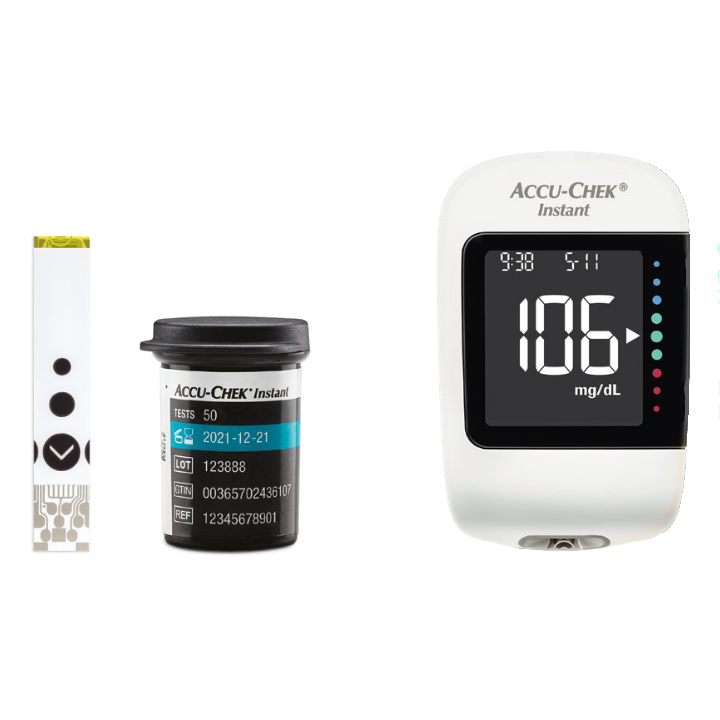 Das Accu-Chek Instant Blutzuckermessgerät von ROCHE für die tägliche Blutzuckerkontrolle, sowohl für Privatpersonen als auch in der Pflege oder Notfallmedizin.
