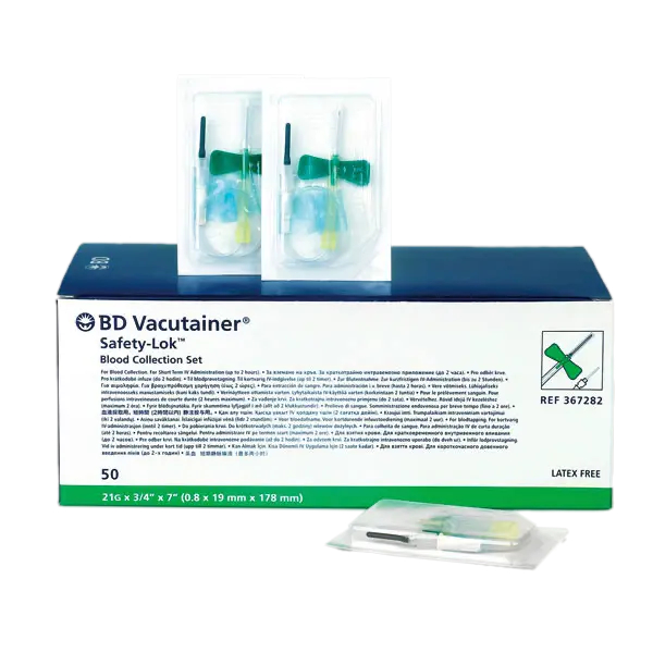 Safety‑Lok Sicherheitsblutentnahmeset von Becton Dickinson in verschiedenen Ausführungen. Geeignet für alle Vacutainer Blutentnahmesysteme.