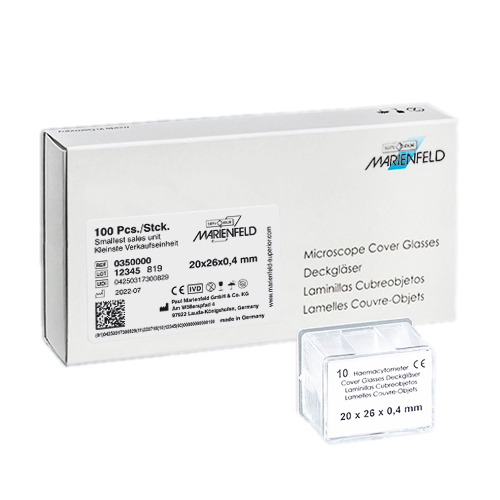 Die Deckgläser 20 x 26 mm für Zählkammern und aus Haemacytometer von MARIENFELD für den Einsatz in medizinischen und biologischen Labors eignen sich hervorragend zur Abdeckung von Zählkammern bei Zellzählungen oder mikroskopischen Analysen.