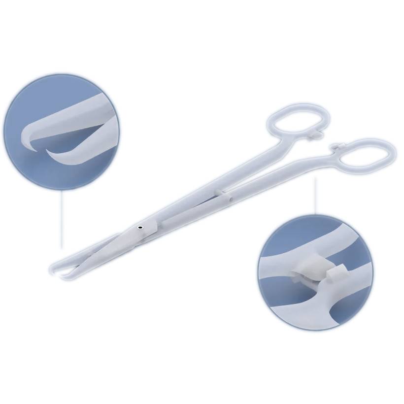 Diese Haken-Kugelzange ist 25 cm lang und besteht aus robustem Kunststoff. Sie ist besonders für Prozeduren geeignet, bei denen ein fester Halt erforderlich ist. Die scharfen Spitzen der Zange und der dreifach verriegelte Haken ermöglichen einen sicheren und festen Griff am Gebärmutterhals. Das Design der Zange minimiert Schmerzen und Blutungen während der Anwendung.